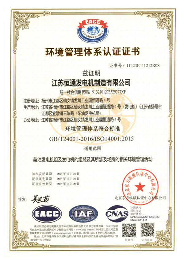 恒通發(fā)電機榮譽資質(zhì)